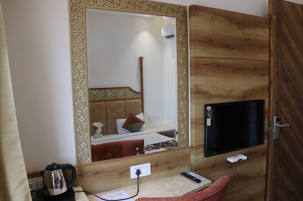 Nice hotel newly build. Spacious room. Room service and cooperative staff. Food available. Neat and clean bathrooms. Peaceful location near to Golden temple. Reasonable price at this place. Overall experience was good.